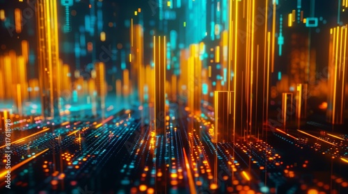 © sunthon, Obraz premium Abstract background of glowing particles. Futuristic digital technology concept.