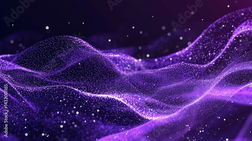 Fototapeta premium Abstract Background of Glowing Purple Particle Waves and Shimmering Stars