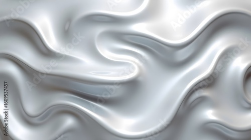 Fototapeta premium Abstract background of luxurious white or silver liquid silk. The smooth, flowing, and wavy texture creates an elegant and modern backdrop for design.