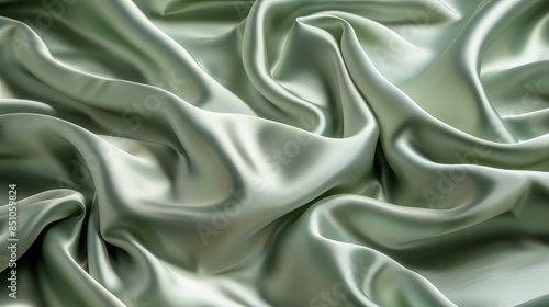 © Palung, Obraz premium Abstract background of sage green satin fabric. Wave abstract background