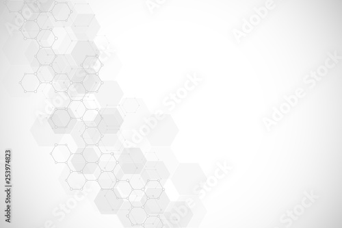 Fototapeta premium Abstract background of science and innovation technology. Technical background with hexagons pattern and molecular structures.