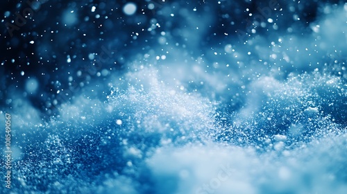 © MSH, Obraz premium Abstract background of snow and falling snowflake particle bokeh blur