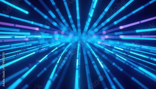 Fototapeta premium Abstract background of vibrant blue neon linear lights forming geometric patterns , tint, dynamic