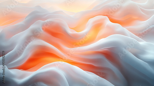 Fototapeta premium Abstract background of white flowing fabric with orange light shining through...