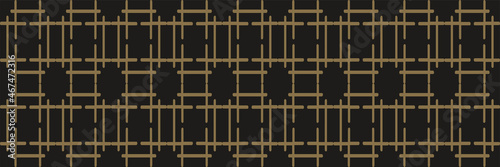 Naklejka premium Abstract background pattern with golden geometric linear elements on black background. Seamless background for wallpaper, textures.