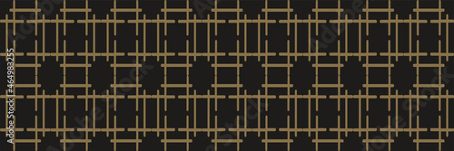© PETR BABKIN, Naklejka premium Abstract background pattern with golden geometric linear elements on black background. Seamless background for wallpaper, textures. Vector illustration.