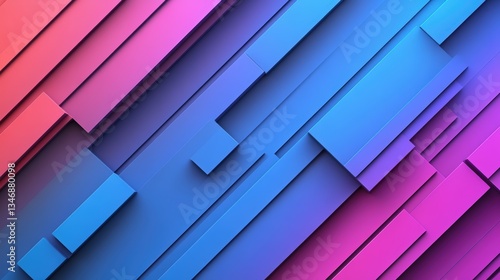 Fototapeta premium Abstract background showcasing dynamic interplay of vibrant pink and blue overlapping rectangular shapes arranged diagonally in a layered three-dimensional design