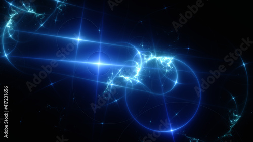 © Andrey Shtepa, Obraz premium Abstract background, smooth blue lines on a black background.