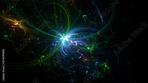 © Andrey Shtepa, Fototapeta premium Abstract background, smooth blue lines on a black background