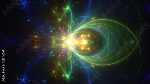 © Andrey Shtepa, Obraz premium Abstract background, smooth multicolored lines on a black background.