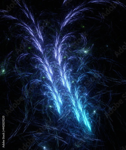 © Andrey Shtepa, Obraz premium Abstract background, smooth multicolored lines on a black background.