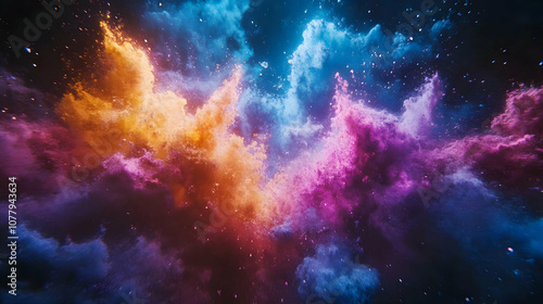 © farikhin, Naklejka premium Abstract Background: Vivid Color Burst with Stars