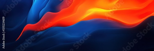 Fototapeta premium Abstract background with a blue and orange gradient, featuring wavy shapes against a dark background, banner design