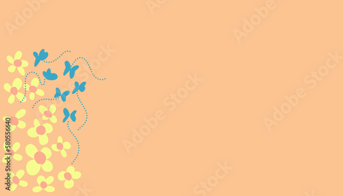 Naklejka premium Abstract background with a cream color illustration with a pattern of flowers and butterflies