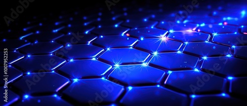 Obraz premium Abstract background with a hexagonal pattern in blue tones with glowing lights.
