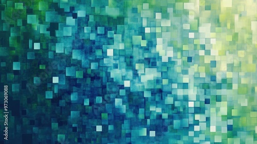Fototapeta premium Abstract background with a pixelated effect, featuring small squares in various shades of blue and green.