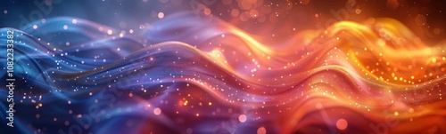 © kramynina, Obraz premium Abstract background with a wave of colorful lights and bubbles, banner, copy space