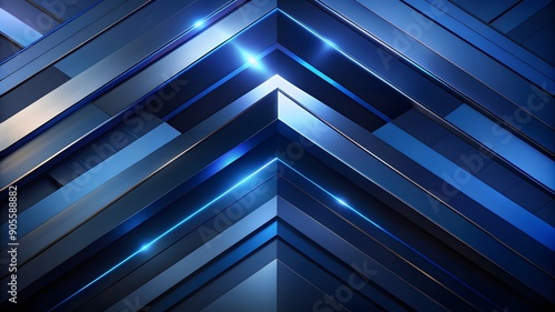 Obraz premium Abstract background with black and blue lines and geometric shapes, dark blue gradient, modern minimalist style, sharp edges, light reflection on the surface.
