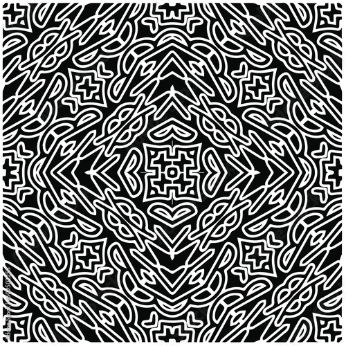 Fototapeta premium Abstract background with black and white mandala. Unique geometric vector swatch. Perfect for site backdrop, wrapping paper, wallpaper, textile and surface design.