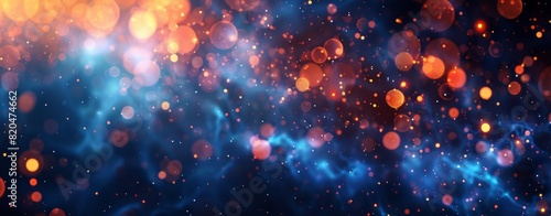 © wanna, Fototapeta premium Abstract background with blue and orange light rays, futuristic digital design elements, and glowing dots on dark backdrop