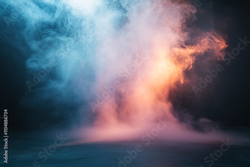 © Umi Sakina, Fototapeta premium Abstract background with blue and orange smoke on a dark background.