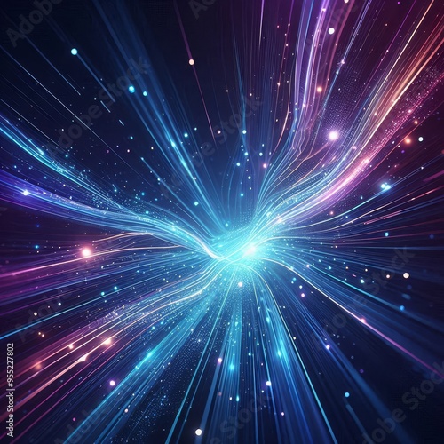 © Vladimir Steblev, Naklejka premium Abstract background with blue and purple neon light rays, cut out