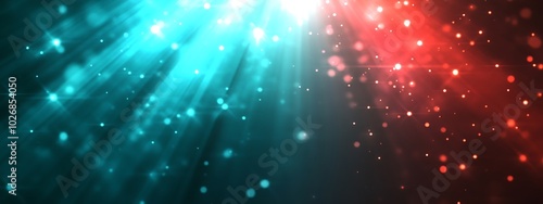 © Raffaza, Naklejka premium Abstract background with blue and red light beams and bokeh.