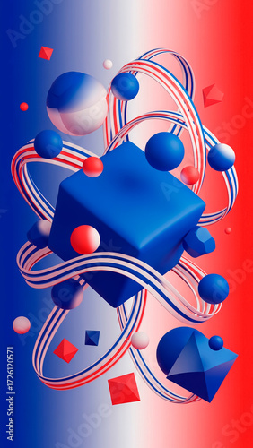 Fototapeta premium abstract background with blue and red waves on the background of the flag of...