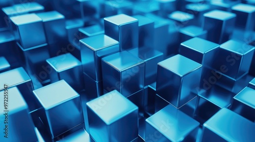 © ShinneProject, Obraz premium Abstract background with blue cubes in a 3D perspective.