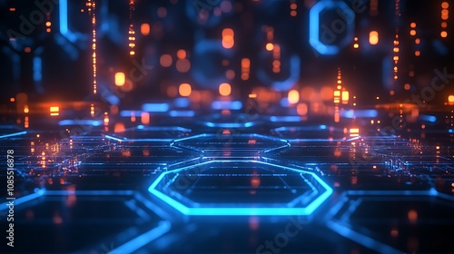 Obraz premium Abstract background with blue glowing hexagons 3D