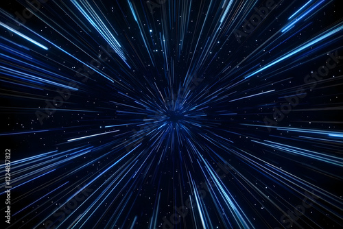 Fototapeta premium Abstract Background with Blue Light Streaks Radiating from Center Point on...