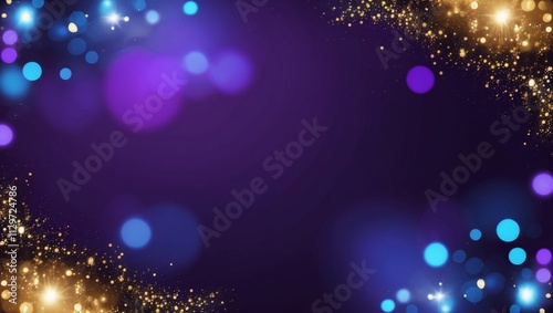 © Artem, Fototapeta premium Abstract background with blue purple and gold lights