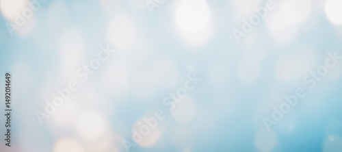 Fototapeta premium Abstract background with blurred light spots in blue and white tones.