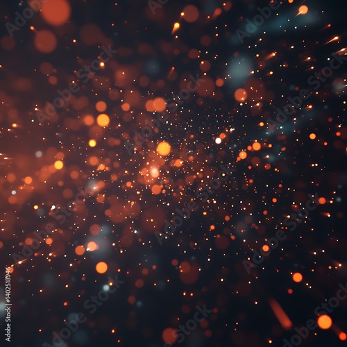 © HjSubaedah, Fototapeta premium Abstract background with bokeh lights in dark orange and black colors.