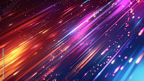 © SukarniStock, Obraz premium Abstract background with bright, colorful diagonal lines and glowing particles.