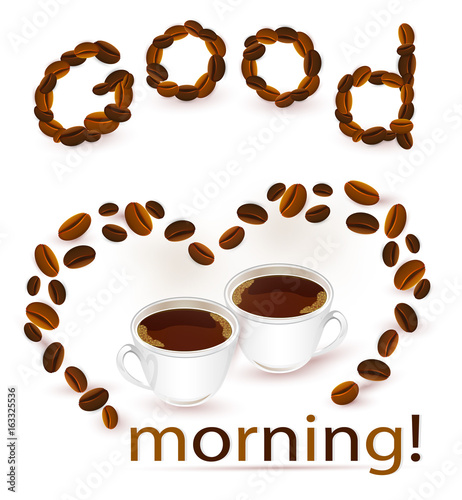 © Nata, Obraz premium Abstract background with coffee beans and cups