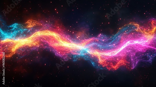 Obraz premium Abstract background with colorful glowing waves and stars.