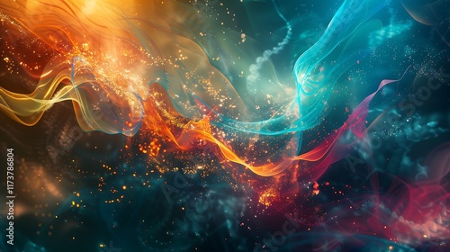 Fototapeta premium abstract background with colorful smoky wires in warm colors with glitter and...