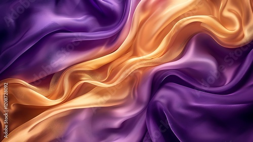© Hamza, Obraz premium Abstract Background with 3D Wave Bright Gold and Purple Gradient Silk Fabric