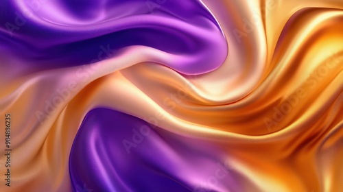 © Johannes, Obraz premium Abstract Background with 3D Wave Bright Gold and Purple Gradient Silk Fabric