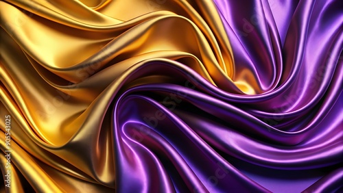 © Artfinity, Fototapeta premium Abstract Background with 3D Wave Bright Gold and Purple Gradient Silk Fabric. Abstract flowing liquid background
