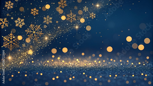 Obraz premium abstract background with Dark blue and gold particle. Christmas Golden light...