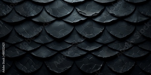Fototapeta premium Abstract background with dragon scales and light textural patterns on black background, minimalistic design, matte texture.