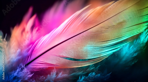 Obraz premium Abstract background with feather in colored lighting, generative AI.