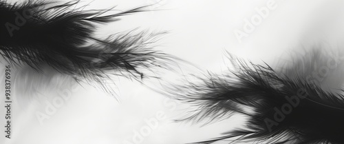 Obraz premium Abstract background with feathers and blurred black and white, minimalist design, monochrome palette.