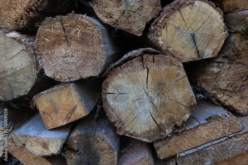 © supersomik, Naklejka premium Abstract background with felled wood.Selective focus