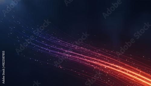 © Husen, Obraz premium Abstract background with flowing streams of glowing orange and blue light particles.