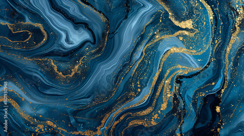 Fototapeta premium Abstract background with fluid swirling patterns in shades of blue and gold,...