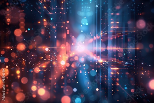 © cochisevisuals, Naklejka premium Abstract background with glowing lights and lines, creating a futuristic and dynamic digital landscape.