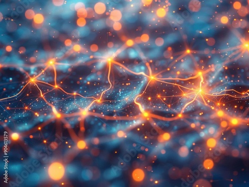 © Soraya, Obraz premium Abstract background with glowing lines and dots.